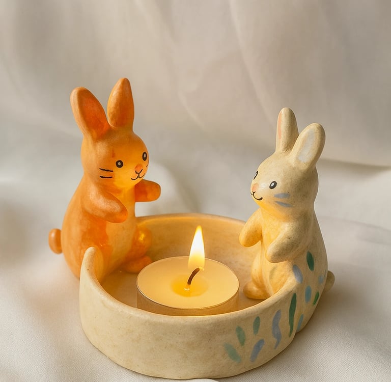 Candlelight transforms any space, and handmade holders bring an even deeper sense of warmth. Start by rolling clay into a ball and pressing a tea-light into the center. Smooth the edges or let them stay rustic—either way, you’ll have a cozy piece for your table or windowsill.
