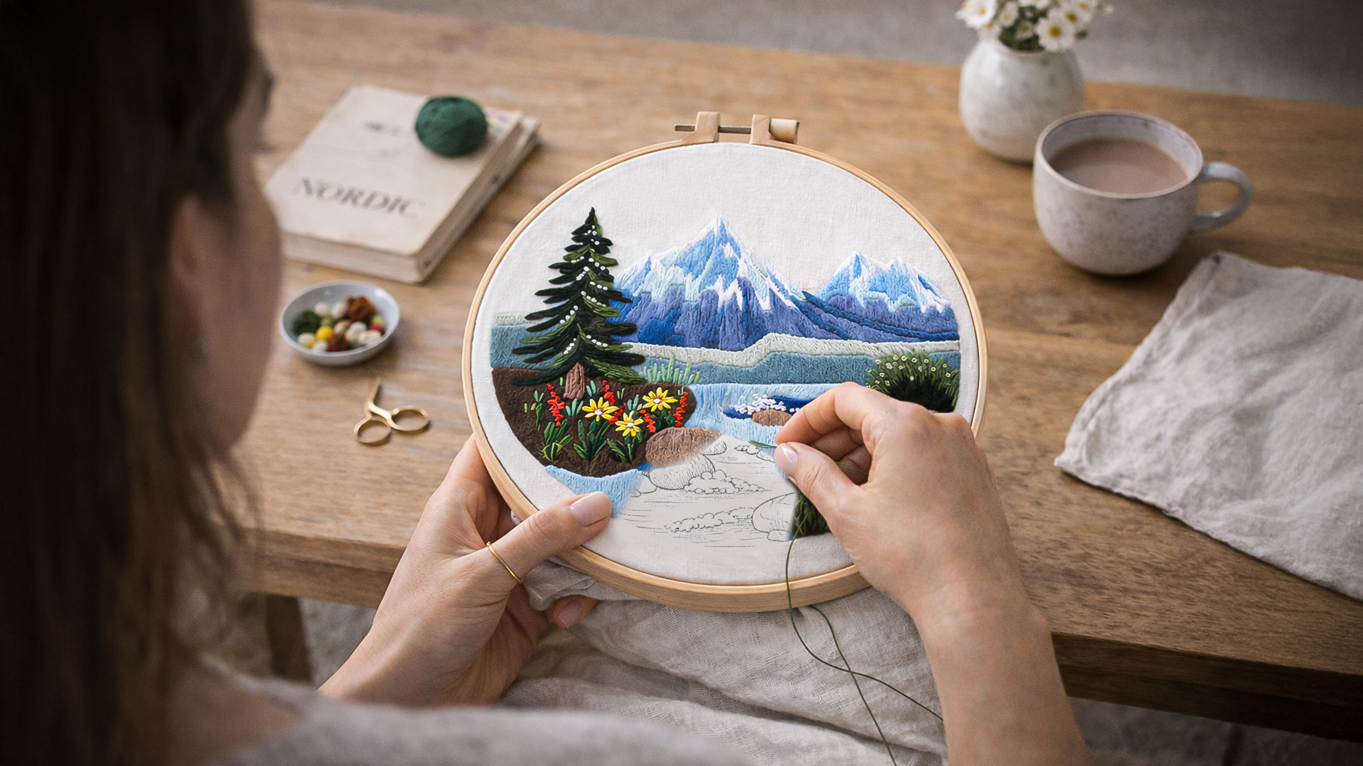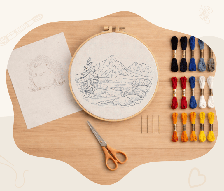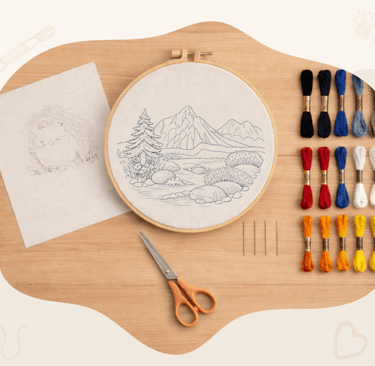 Each beginner embroidery kit includes fabric, embroidery threads, needles, an embroidery hoop, and detailed instructions. Everything you need is inside. No additional tools required.